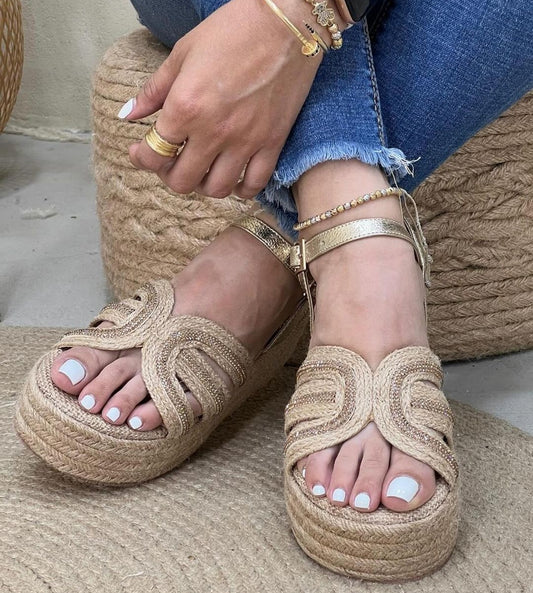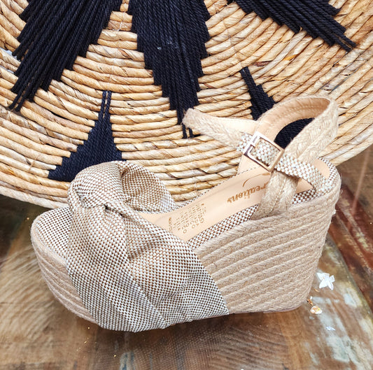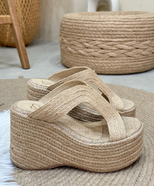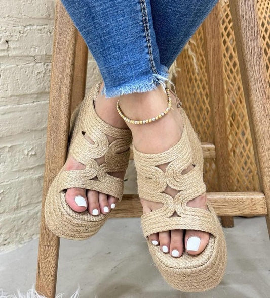 Ribbon Tie Up Jute Platform Medium Wedge Sandals